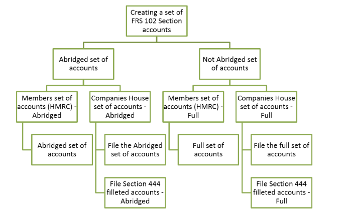 - Creating a set of FRS 102 Section 1A accounts > Not Abridged set of accounts > Companies House set of accounts – Full > File Section 444 filleted accounts – Full